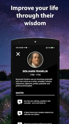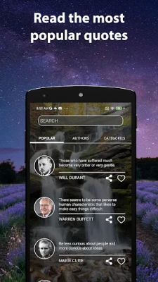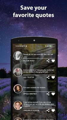 Với Daily Quotes for Motivation, mỗi ngày mới sẽ bắt đầu với một nốt nhạc lạc quan, một nguồn động viên mạnh mẽ giúp bạn kiên định trên con đường đạt được mục tiêu. Việc chia sẻ những trích dẫn yêu thích với bạn bè và người thân qua ứng dụng cũng trở nên thật đơn giản, lan tỏa năng lượng tích cực và cùng nhau hướng tới một cuộc sống ý nghĩa hơn. Hơn cả việc cung cấp lời khuyên, Daily Quotes for Motivation là công cụ giúp nâng cao tinh thần, cải thiện tâm trạng và cuối cùng, đưa bạn đến gần hơn với phiên bản tốt nhất của chính mình.