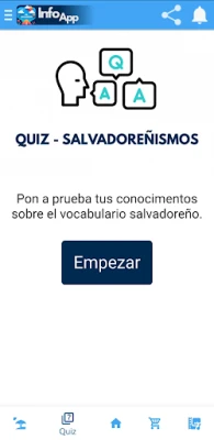 Ứng dụng cũng không bỏ qua khía cạnh di chuyển, với mục Transporte (Giao thông) cung cấp thông tin chi tiết về các tuyến xe buýt nội địa và quốc tế, cùng danh sách các hãng hàng không đang hoạt động, giúp bạn dễ dàng lên kế hoạch cho mọi hành trình. Đặc biệt, để thử thách kiến thức và hòa mình sâu hơn vào văn hóa địa phương, Quiz - Salvadoreñismos sẽ mang đến những câu đố vui về các từ ngữ đặc trưng của người El Salvador, vừa học vừa chơi một cách thú vị. Hãy sẵn sàng khám phá và tìm hiểu về El Salvador theo cách của riêng bạn!