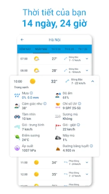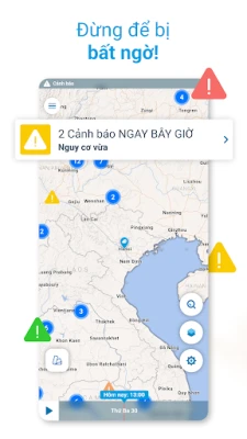 Đắm mình vào thế giới thời tiết với công cụ trực quan mạnh mẽ. Radar mưa tiên tiến cho phép bạn theo dõi lượng giáng thủy với độ chính xác cao, trong khi hệ thống bản đồ động cung cấp các lớp dự báo đa dạng từ nhiệt độ, mưa, tuyết đến áp suất khí quyển, cùng với hiệu ứng chuyển động trực quan cho hướng gió và sóng. Bạn cũng có thể xem hình ảnh vệ tinh cập nhật trong 12 giờ qua. Luôn an tâm với các cảnh báo thời tiết chính thức từ Trung tâm Dự báo Khí tượng Thủy văn Quốc gia tại Việt Nam và các cơ quan uy tín khác trên toàn cầu, đảm bảo bạn nhận được thông báo kịp thời về mọi điều kiện khắc nghiệt. Ngoài ra, ứng dụng còn cung cấp chi tiết về chất lượng không khí, độ ẩm và gió, giúp bạn đưa ra quyết định sáng suốt về các hoạt động ngoài trời và bảo vệ sức khỏe khỏi các tác nhân gây dị ứng.